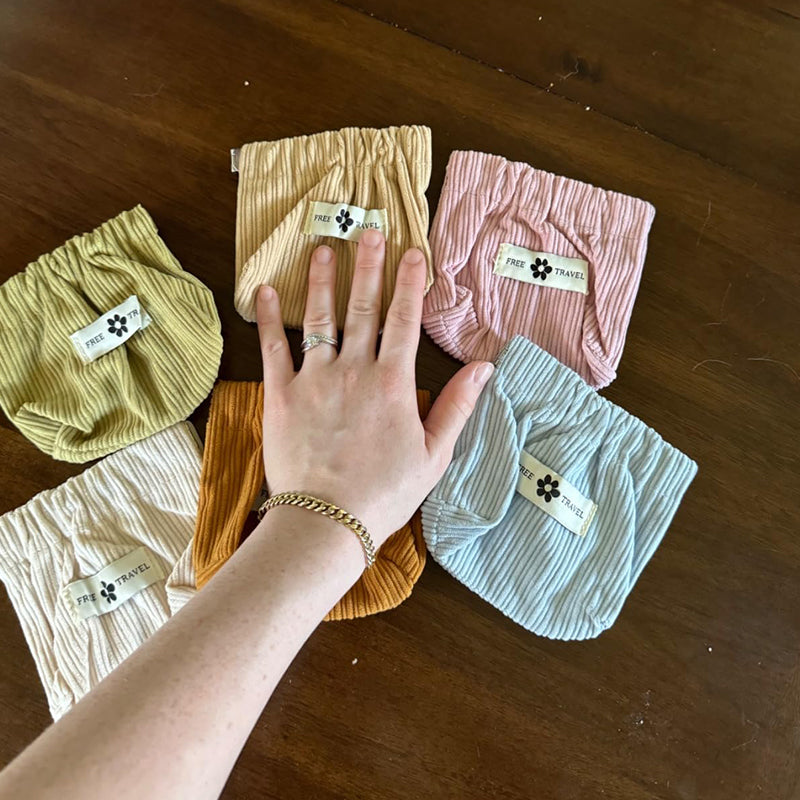 Este kit incluye 4 bolsitas de pana en colores diferentes, cuidadosamente elegidos para combinar con cualquier bolso o estilo.